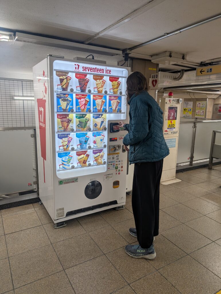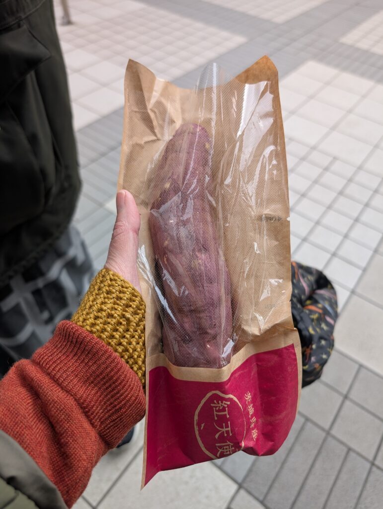 One of the coolest things about Tokyo is that Konbini (convenient stores) and markets are always close by. You can buy roasted sweet potatoes for a dollar or two, as well as other delicious prepared food like rice balls, sushi, sandwiches, steam buns, etc. Having a walking around sweet potato is so wonderful. Emma and I always have one.