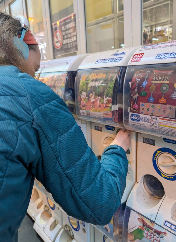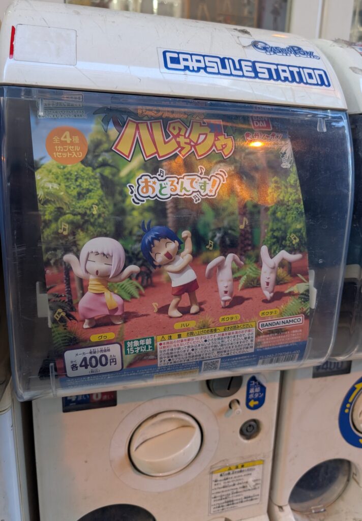 We were happy and surprised to see characters from an older anime we enjoy in a Gachapon machine.