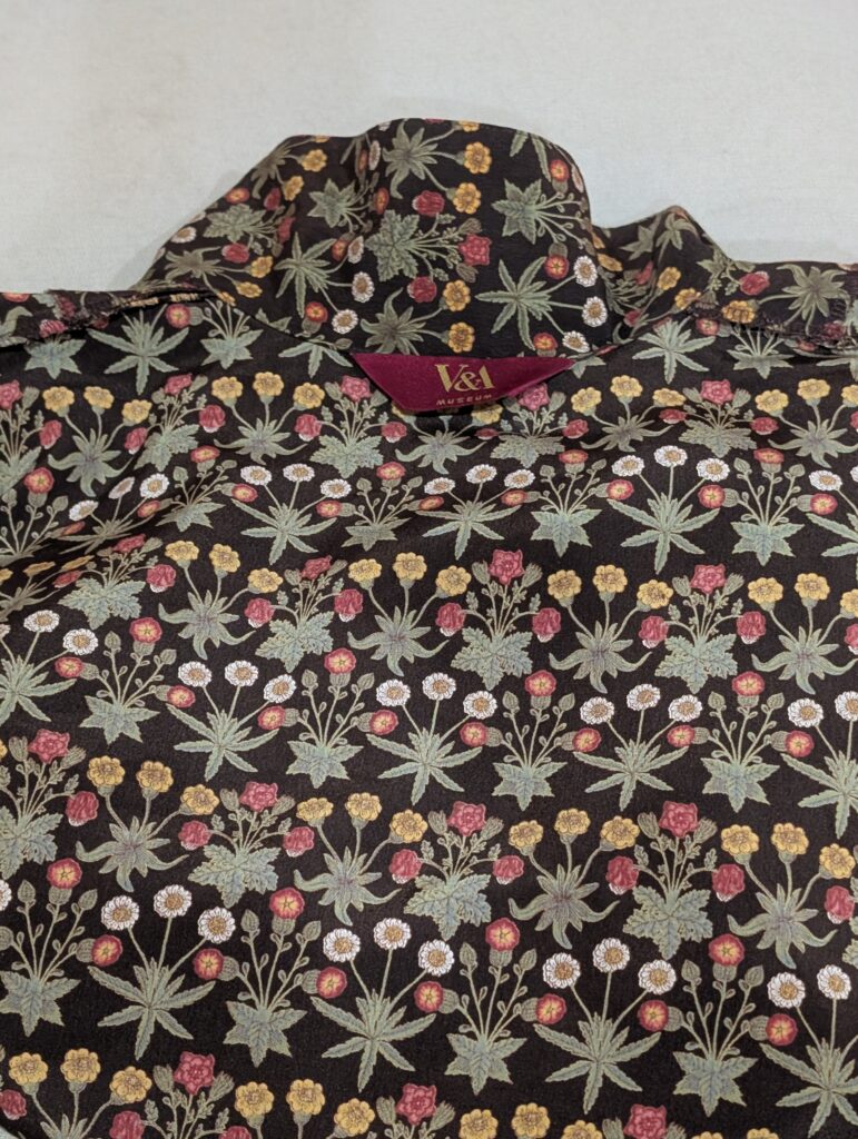I found a real thrift store (not like one with second hand Chanel) and bought this shirt. It is a William Morris print (I think) from the Victoria & Albert museum. Fun fact: I visited London when I was a kid and went to that museum. I am certain I would appreciate it much more now. 😊