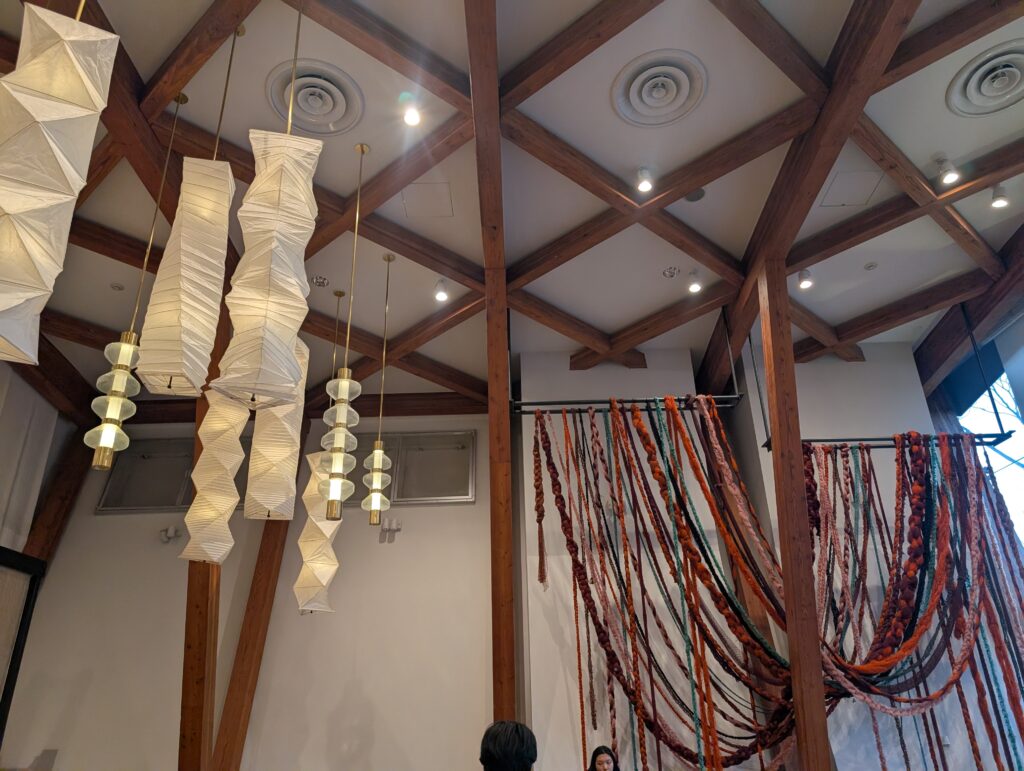 We were forced into a very chic Starbucks with nice lights and art hanging from the high ceiling.