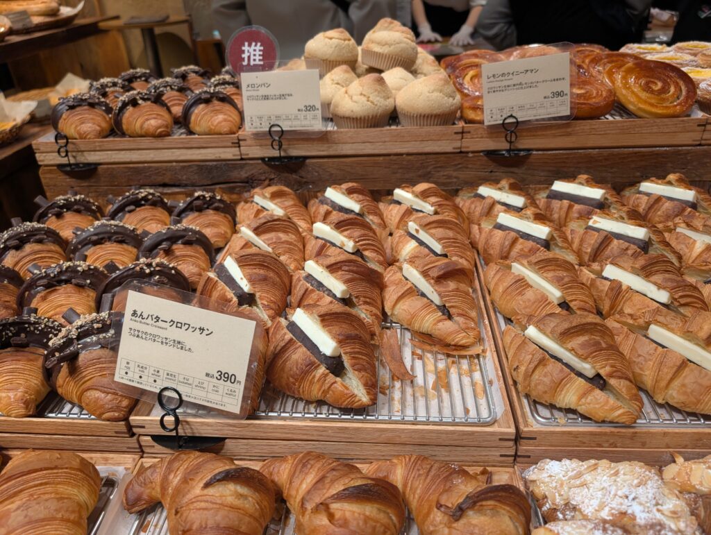 We were happy to try the chocolate croissant and melon pan at the Muji cafe.